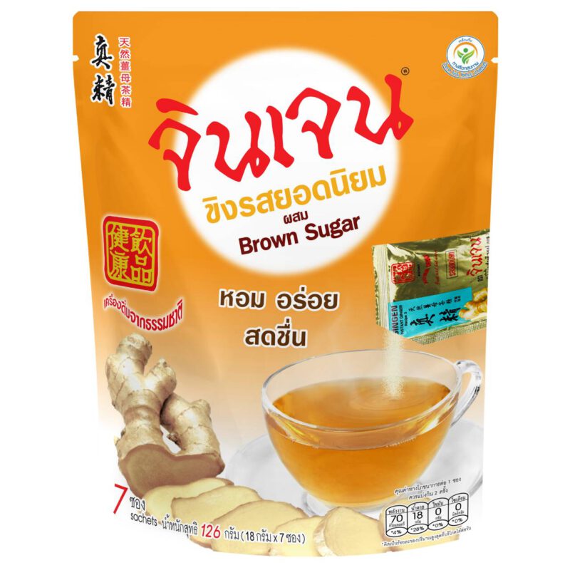 4. “จินเจน” เครื่องดื่มขิงผงสำเร็จรูปรสยอดนิยม สูตร 3 ขนาด 126 g กรัม (1 ห่อบรรจุ 7 ซอง ซองละ 18 กรัม) จำนวน 1 ห่อ